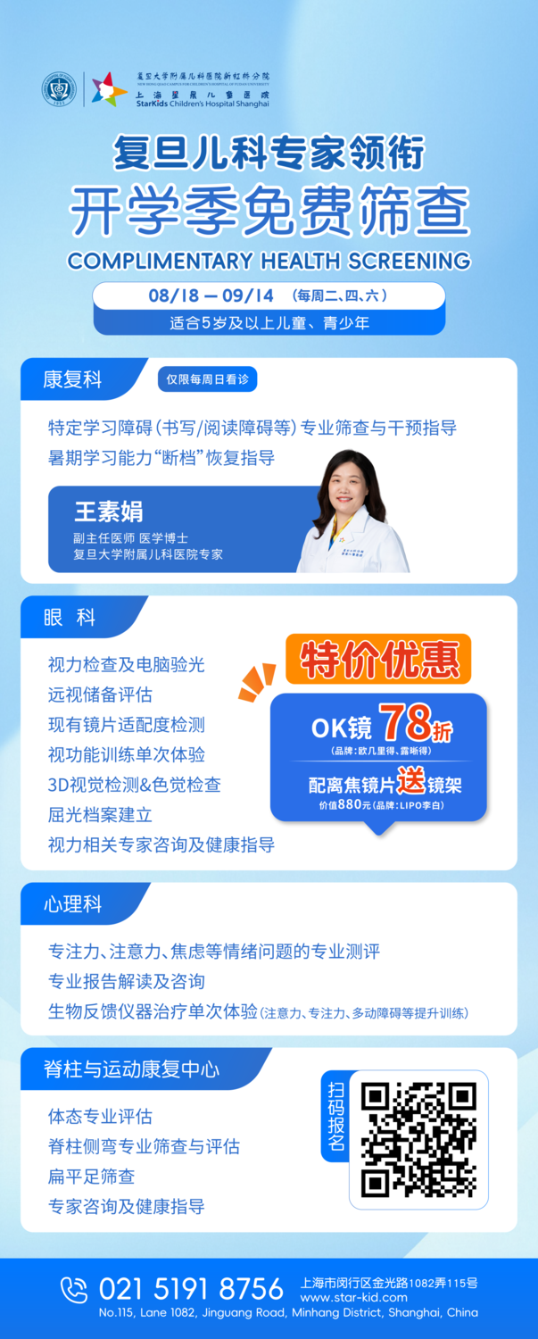 上海星晨儿童医院(暨复旦大学附属儿科医院新虹桥分院) 地址: 电话: 简介: |